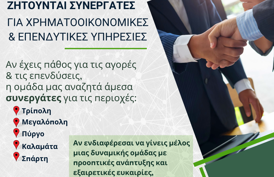 Αν έχεις πάθος για τις αγορές και τις επενδύσεις, η ομάδα μας αναζητά άμεσα συνεργάτες για τις περιοχές: Τρίπολη Μεγαλόπολη Πύργο Καλαμάτα [...]